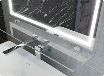 Nos miroirs ne se limitent pas au rétro-éclairage, ils peuvent aussi afficher des informations, telles que l’heure et la météo. Nos miroirs peuvent même être dotés de panneau LCD intégré avec tapis chauffant supplémentaire. Des solutions idéales pour optimiser votre routine quotidienne.