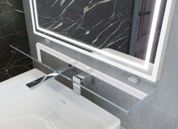 Cet accessoire est fait de verre de la plus haute qualité, grâce auquel il s'adapte parfaitement au miroir ! Une brosse à dents, un parfum préféré ou un rasoir - tout est à portée de main !